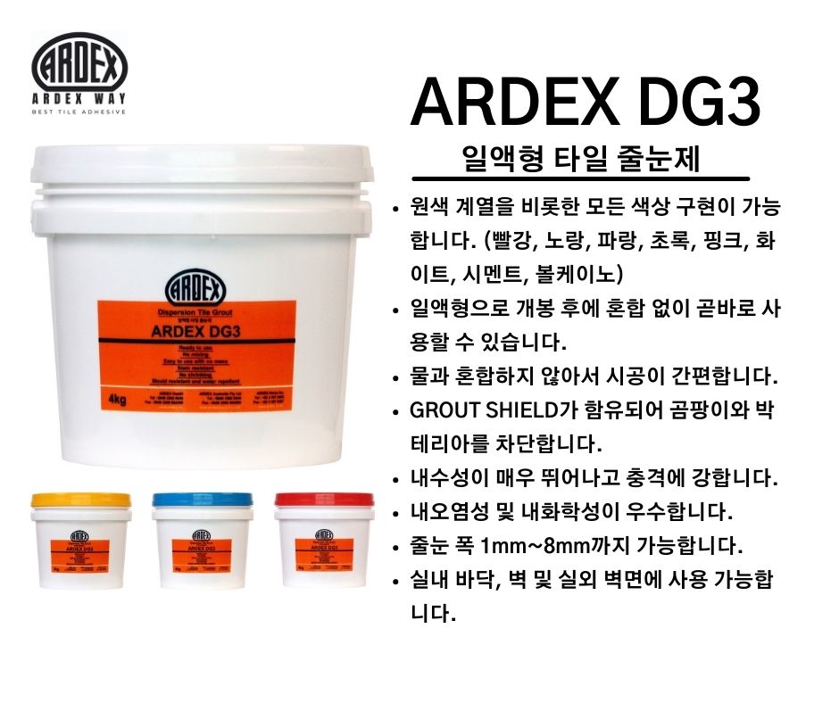 개봉하지 않은 ARDEX DG3는 건조한 실내에 보관해야 하며, 6개월 동안 보관이 가능합니다. (23˚c , 습도 50% 조건)