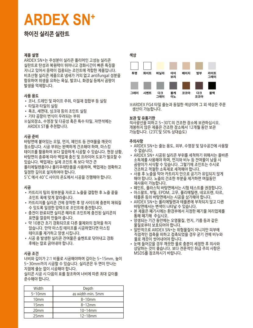 - 소요량 계산 : https://www.ardex.co.kr/products/silicones/ardex-sn-plus